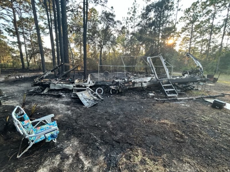 Charger and battery bank causes brush fire in Dunnellon, destroying two campers and a shed