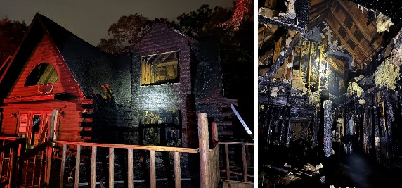 The Ladder 23 crew from Fire Station 23, located on on S. Kensington Ave. in Lecanto, arrived on scene at 10:03 p.m. to find a two-story log home 60% involved with heavy fire showing from several sides